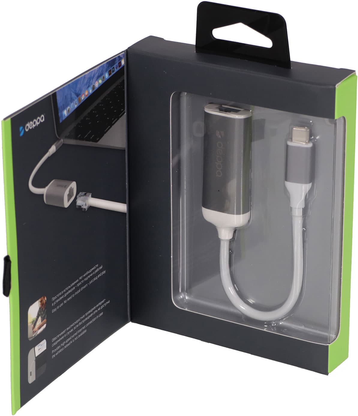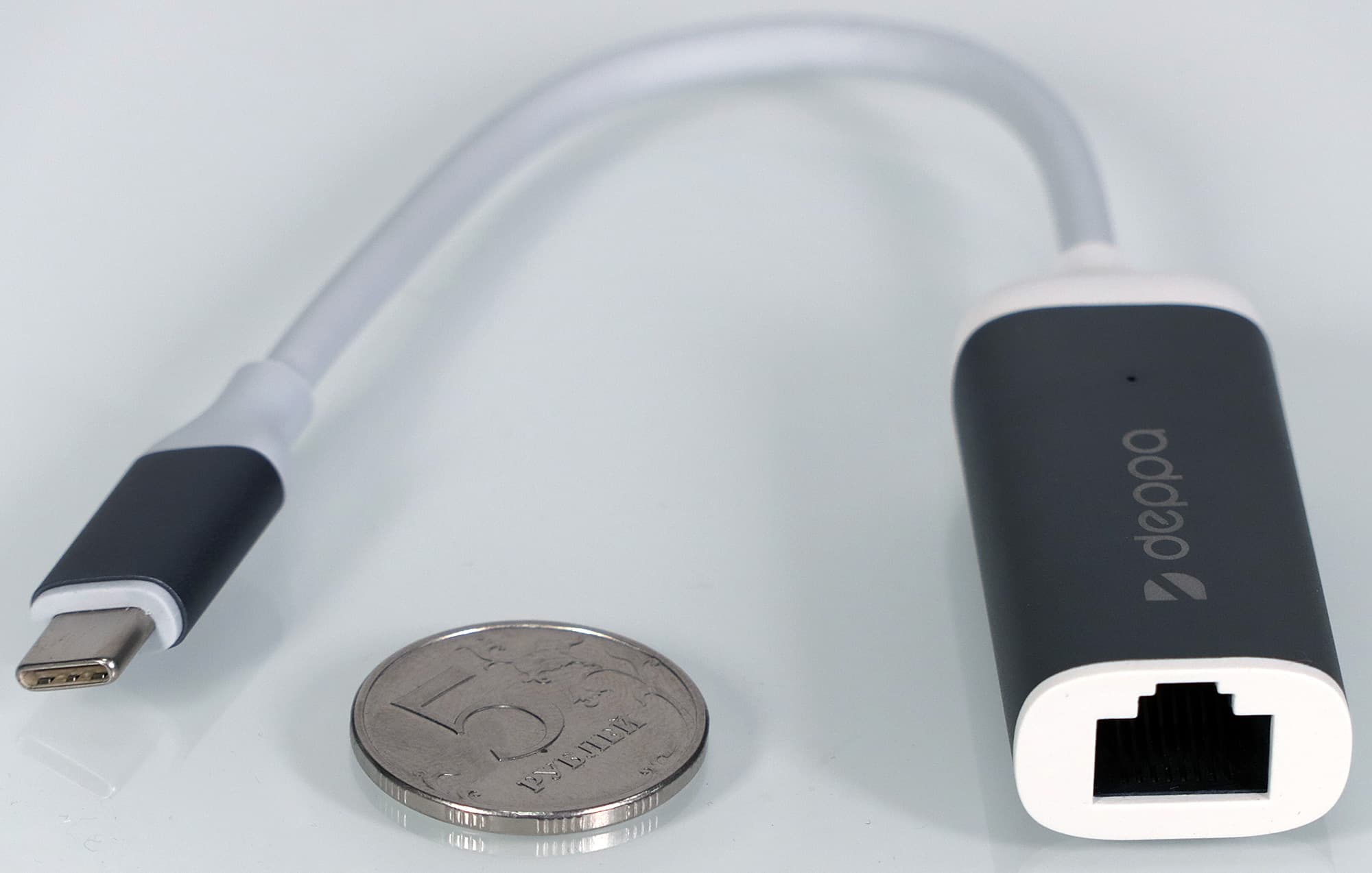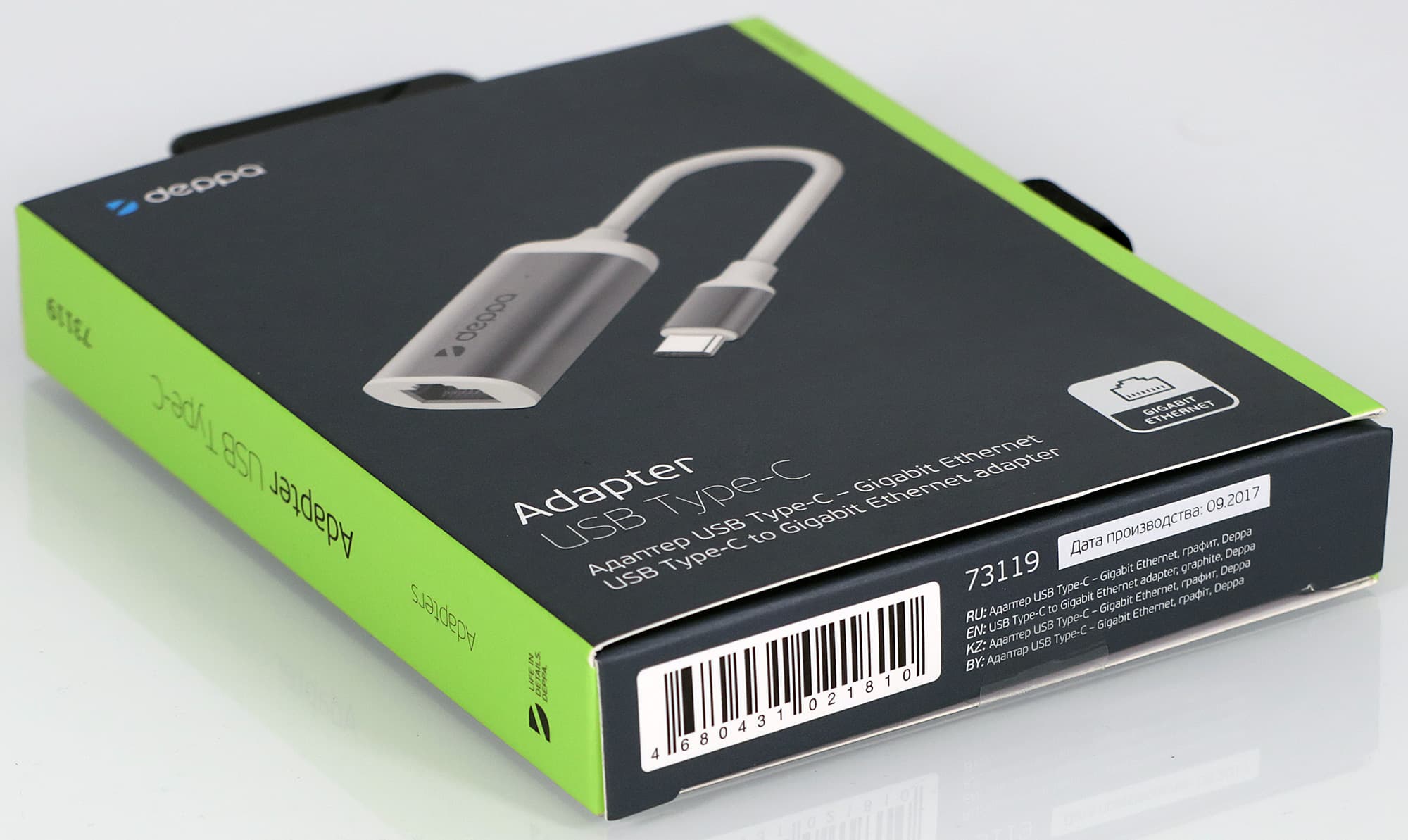 USB 3.0 (или, как его рекомендовано называть сейчас, «USB 3.1 Gen1») тоже устоялся давно, для полной реализации скоростных возможностей гигабитной сети подходит, имеется в подавляющем большинстве компьютеров и не только компьютеров. Стоит также отметить, что компания Realtek в свое время предусмотрела возможность питания RTL8153 не только от 5 В (стандартное значение для USB), но и от 3,3 В, причем без необходимости в дополнительных схемах — последнее может пригодиться, например, для разработки Ethernet-адаптера под iPhone/iPad :) Впрочем, подавляющее большинство сетевых адаптеров на этом чипе рассчитаны на подключение к USB-порту и все еще на «обычный» разъем А-типа. Адаптер же Deppa нам приглянулся как раз тем, что уже использует разъем Type-C, что облегчает его подключение не только лишь к стационарным компьютерам.