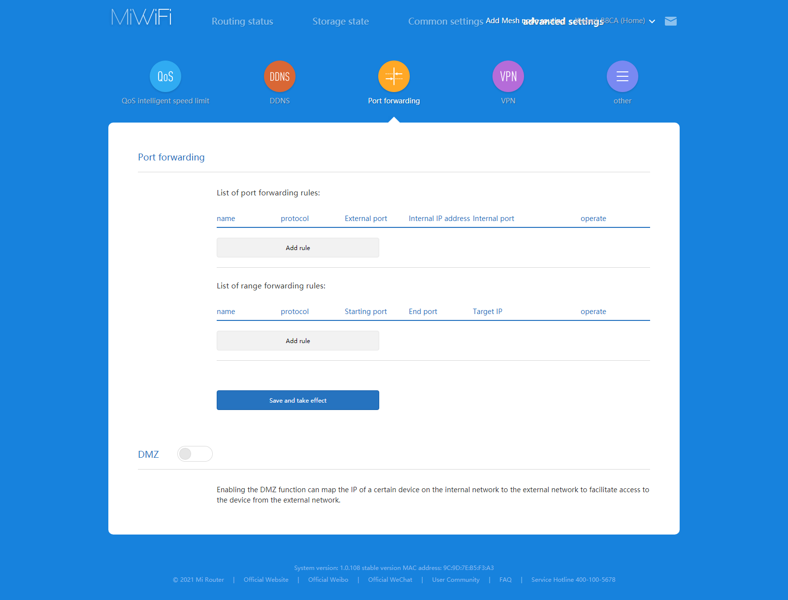 Раздел с настройкой Mesh-сети проверить возможности не было, поскольку тестировался только один роутер.