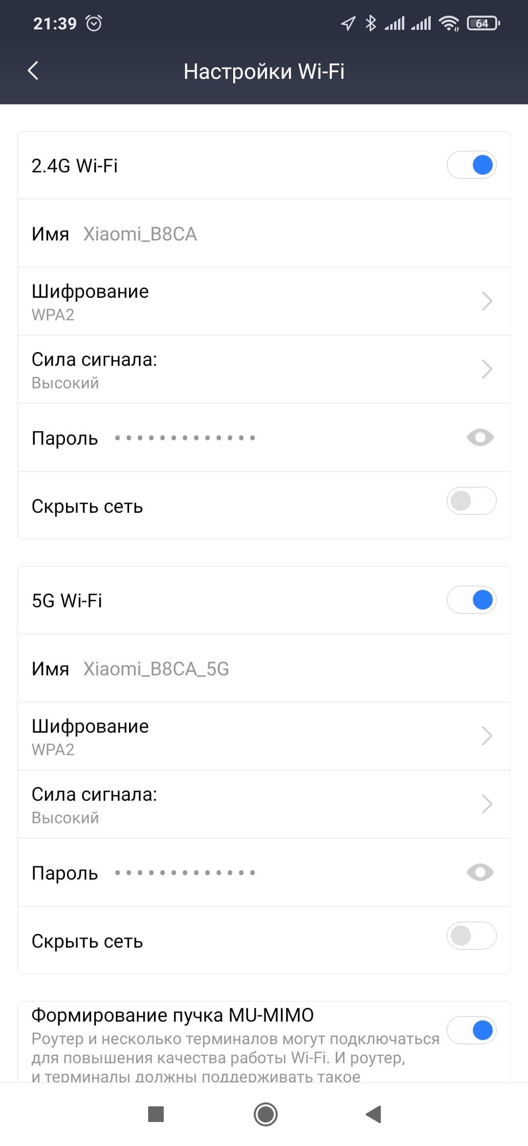 С заводскими настройками или после сброса роутер имеет открытые беспроводные сети. Подключаемся к одной из них со смартфона и открываем программу Mi WiFi. В ней находим новый роутер, устанавливаем параметры подключения к провайдеру и указываем пароль беспроводной сети. Далее через эту же программу можно обновить прошивку роутера. В целом, процедура не самая сложная.