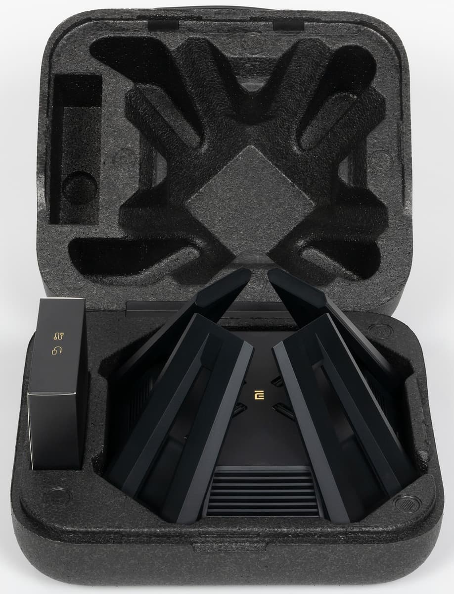 Внутри картонной коробки находится специальный снабженный ручкой «чемодан» из вспененного пенопропилена, аналогичный знакомым всем вставкам для защиты содержимого. Жаль, что применить его кроме как для хранения роутера будет сложно.