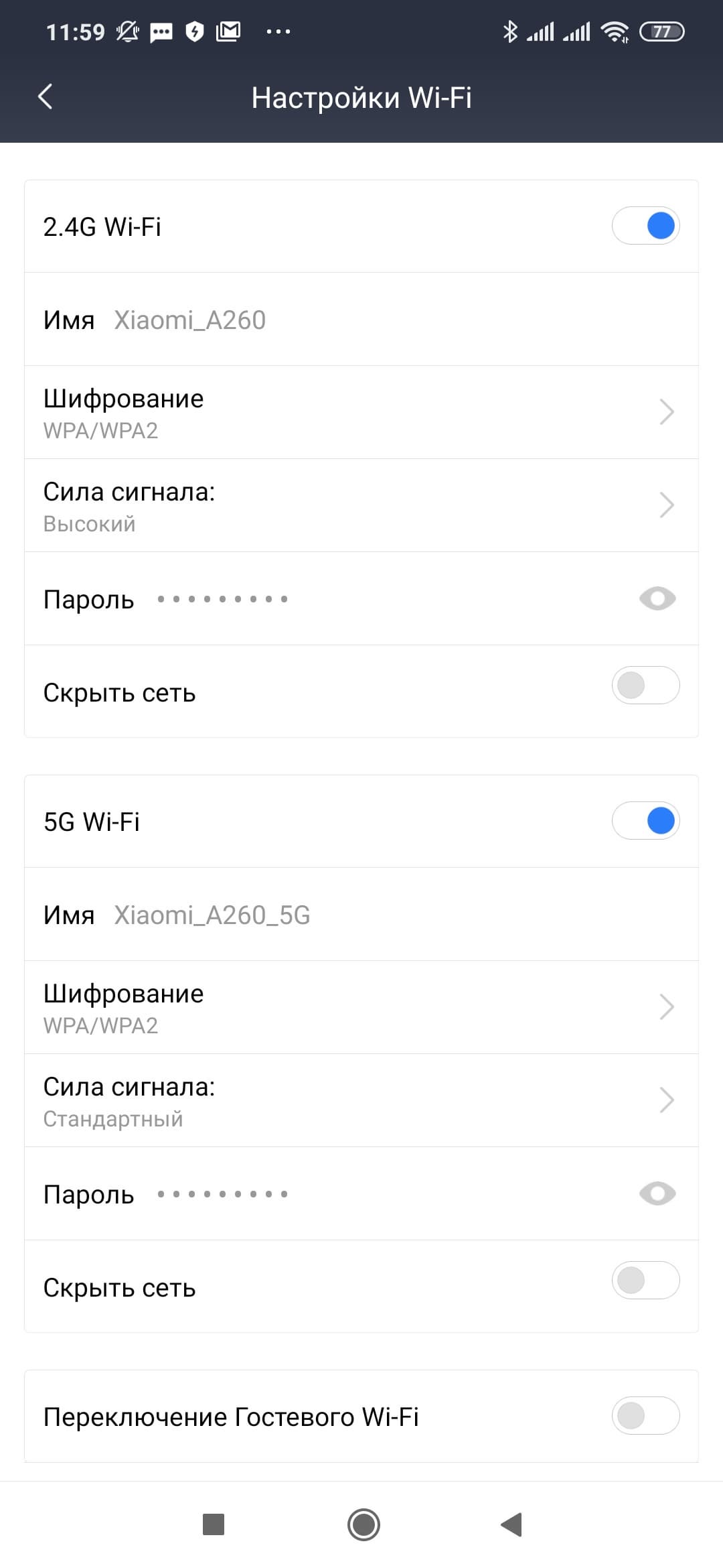 В «Настройки» собраны некоторые параметры роутера. В частности здесь можно изменить настройки беспроводных точек доступа, включить гостевой Wi-Fi, выбрать опции подключения к интернету, поменять режим работы, настроить подключения VPN.
