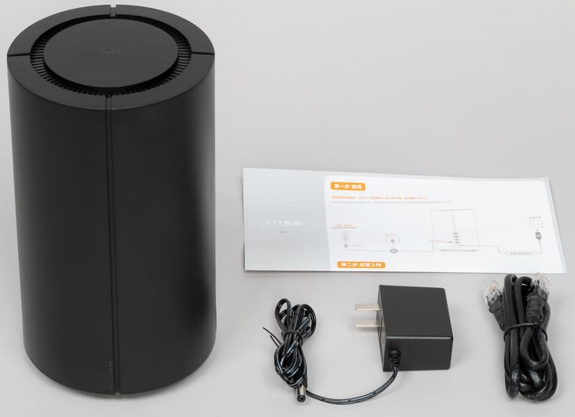 В комплект поставки входят блок питания, патч-корд и листовка-инструкция. Блок питания компактный, с кабелем в 120 см, обычным круглым штекером и плоской китайской вилкой, так что для наших розеток потребуется переходник (или другой блок питания). Параметры распространенные — 12 В 1 А. Патч-корд обычный гигабитный, черного цвета, длина составляет 140 см. Инструкция тоже исключительно на китайском, но никакой уникальной информации там нет.