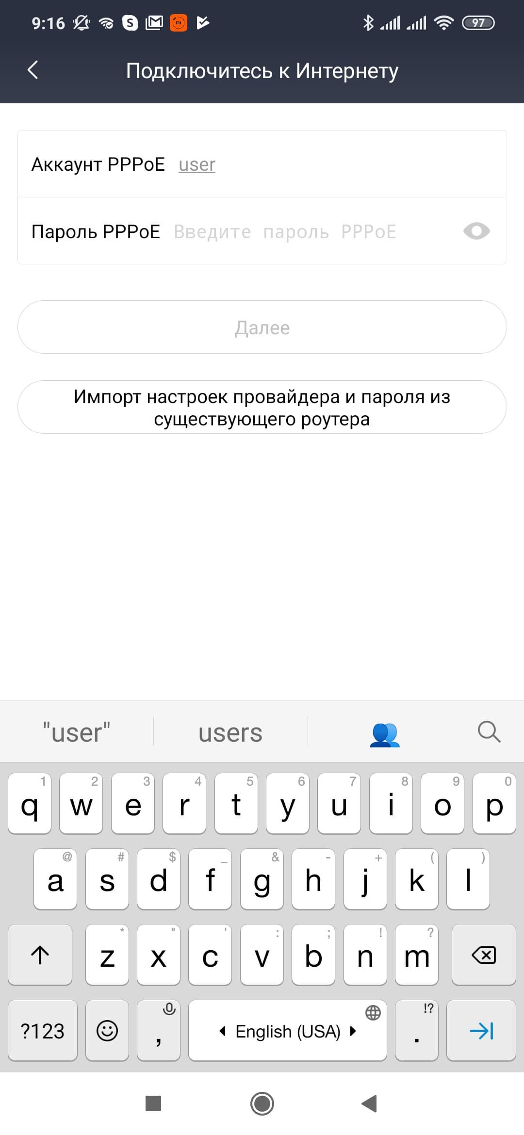 Здесь выбираем настройку как нового или восстановление конфигурации. Подключение к интернету определяется автоматически. Для PPPoE нужно будет указать имя и пароль пользователя. Далее выбираем имя беспроводной сети и пароль, который будет использован и как пароль администратора роутера. На последнем шаге настраиваем интеграцию с аккаунтом Mi (при необходимости).