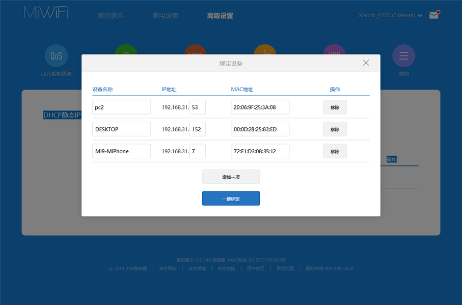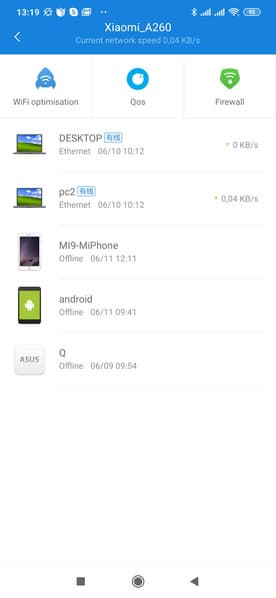 В частности здесь представлен список клиентов, пункты оптимизации Wi-Fi, настройки QoS и межсетевого экрана. При этом два последних возможно просто импортированы из установленного Mi WiFi, поскольку они полностью повторяют экраны этой программы (в том числе, показываются на русском языке). К сожалению, с роутером и его клиентами здесь особо ничего не сделать, да и в действиях для автоматизации они не участвуют.
