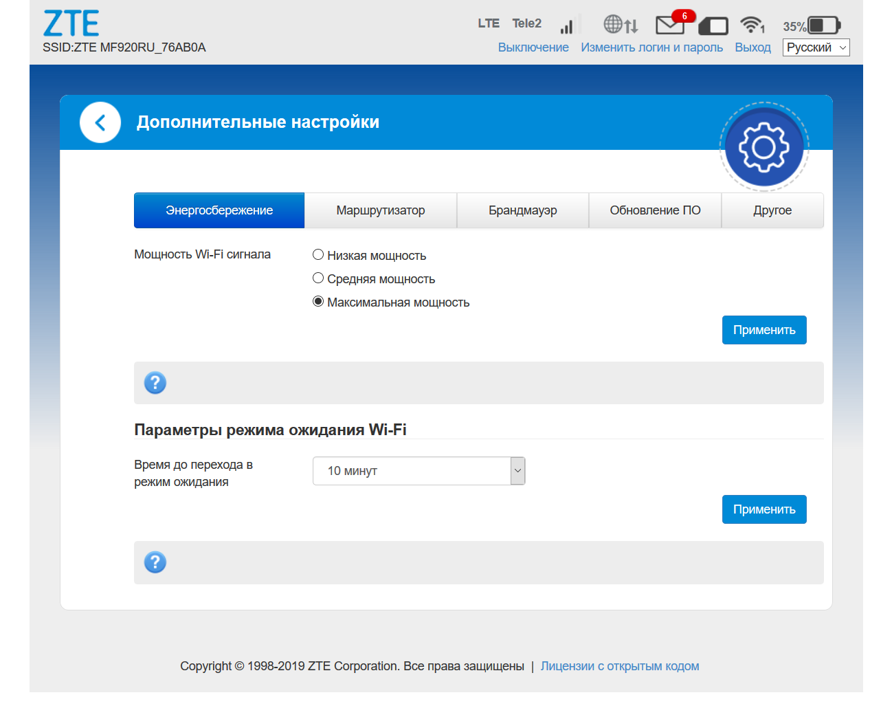 Стоит заглянуть и в раздел «Дополнительные настройки». В частности, на первой странице «Энергосбережение» можно снизить мощность передатчика Wi-Fi, что поможет увеличить время автономной работы, если не требуется большая дальность. Кроме того, можно установить таймер для перевода Wi-Fi в режим ожидания при отсутствии активности.