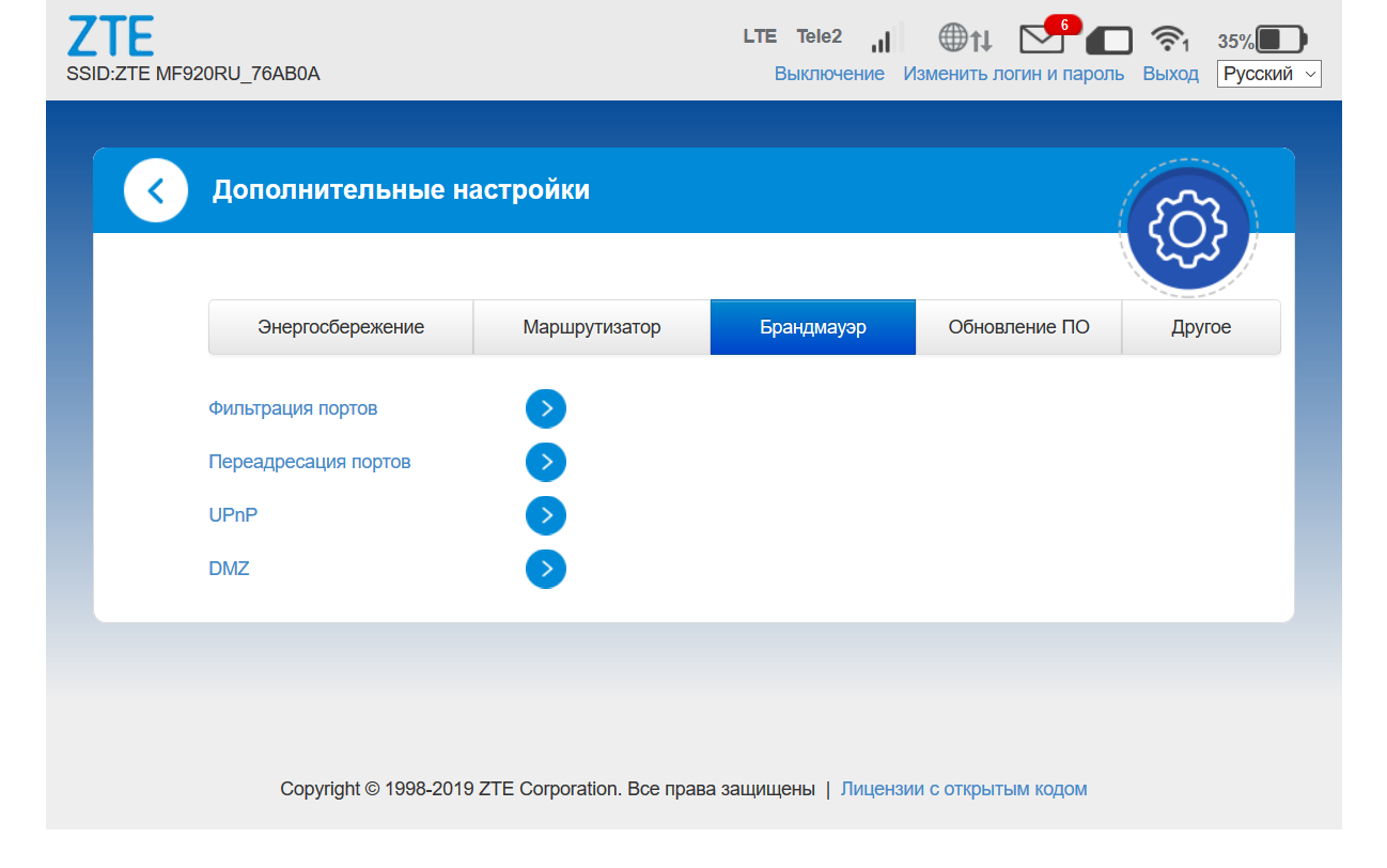 Учитывая, что в большинстве случаев сотовые операторы не балуют «белыми» адресами, наличие функций настройки правил проброса портов, UPnP и DMZ нельзя назвать существенным. Хотя, возможно, в некоторых ситуациях это может пригодиться. Кроме того, на странице «Брандмауэр» можно настроить правила межсетевого экрана, если стоит задача повысить безопасность сетевого подключения.