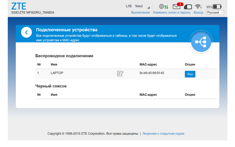 При этом в схеме есть ссылки на дополнительные страницы настроек. В частности, это список клиентов с их именами и MAC-адресами, где можно внести нежелательные устройства в черный список блокировки доступа.