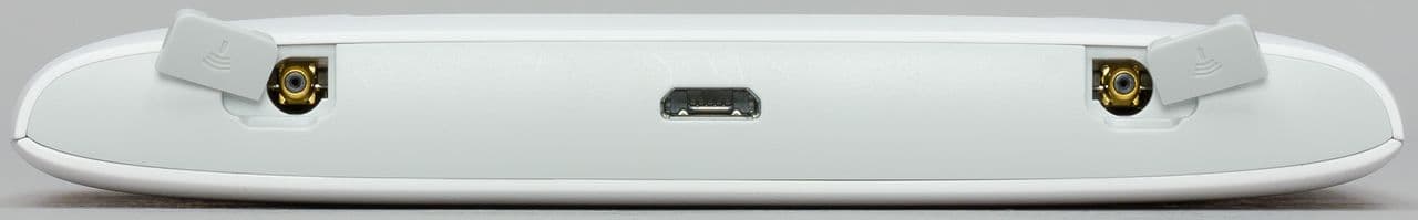 На противоположной стороне разместили вход формата Micro-USB для зарядки встроенного аккумулятора и два разъема TS-9 для внешних антенн сотового модема. Они могут пригодиться при работе на большом расстоянии от базовых станций.