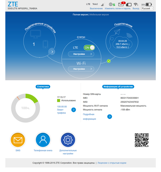 В общем случае, многим пользователям не потребуется ничего настраивать в устройстве для работы в обычных сценариях. Но если вам необходимо что-то изменить, узнать статус или работать с SMS, то для этого можно использовать два способа: веб-интерфейс и мобильное приложение. Рассмотрим сначала первый вариант. Заметим, что для удобства работы с мобильных устройств есть специальная ориентированная на них версия дизайна, но начнем описание с полной.