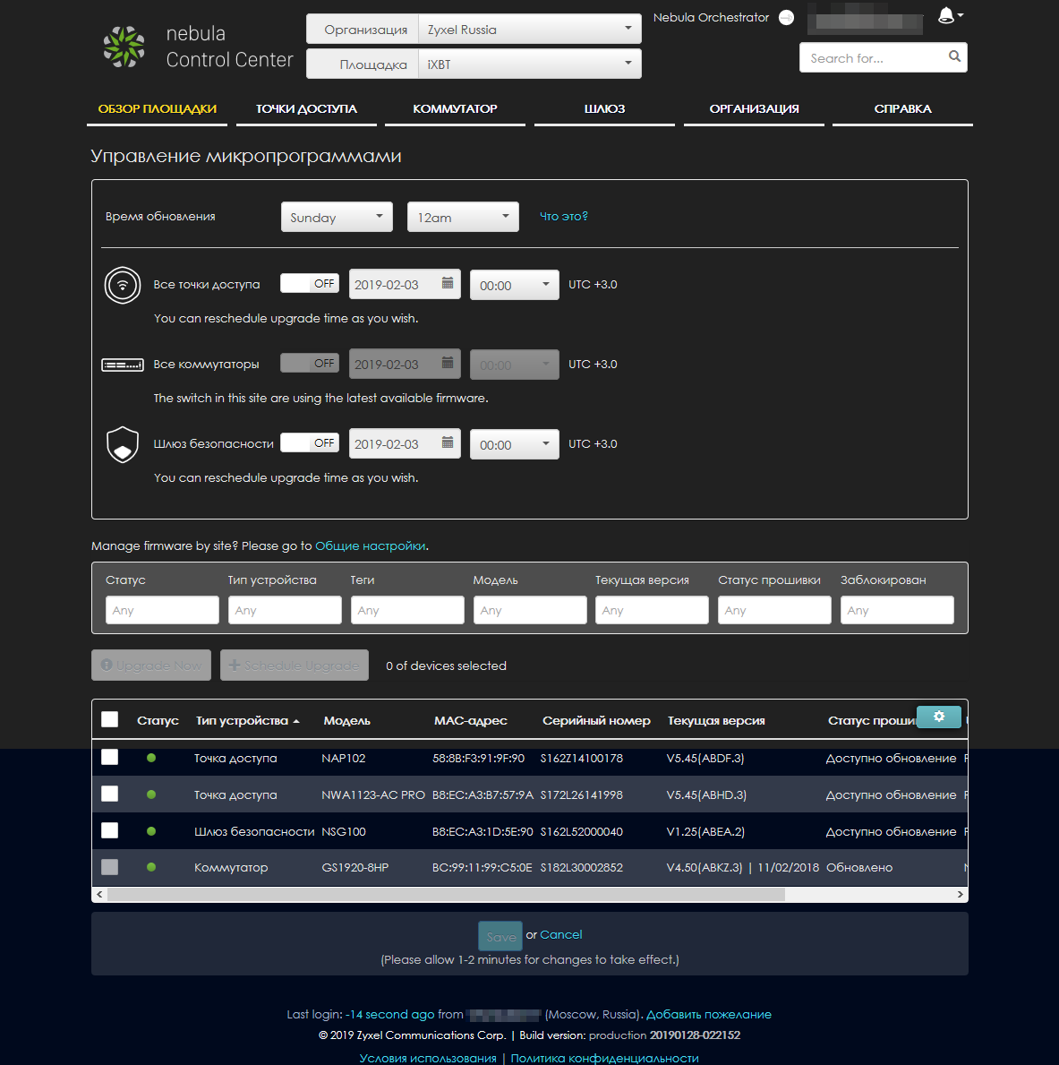 Недавно была добавлена отдельная страница с более подробной информацией о встроенном программном обеспечении. Кстати, при необходимости запустить обновление можно в любой момент, а не только по расписанию.
