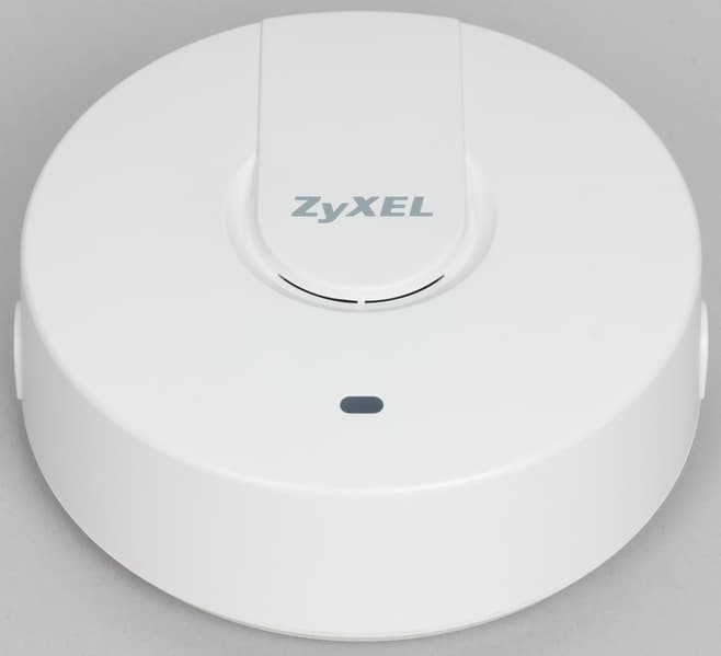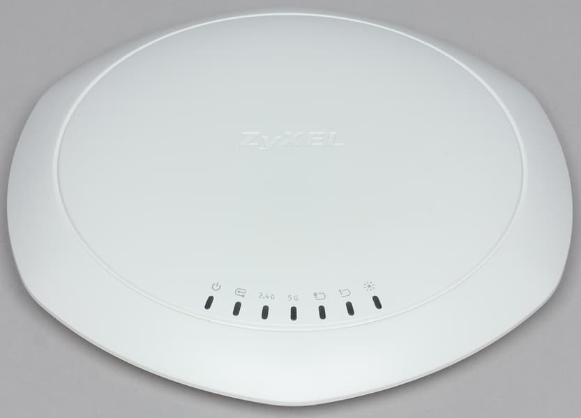 Кроме точек доступа с работой только через облако, есть в каталоге компании гибридные продукты с технологией NebulaFlex, в частности Zyxel NWA1123-AC Pro. Устройство поставляется в комплекте с креплением, инжектором питания с кабелем, сетевым кабелем и документацией. Корпус из матового белого пластика имеет диаметр 20 см и высоту 3,5 см. Модель оборудована аппаратным переключателем конфигурации антенн, позволяющим обеспечить оптимальные режимы в случае крепления как на потолке, так и на стене.