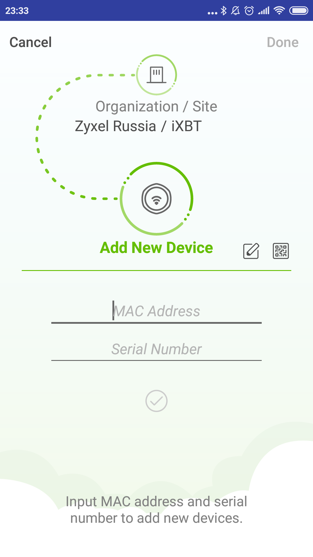 Здесь же можно нажатием кнопки «+» добавить новое устройство к сети. При этом для удобства можно просто отсканировать информацию о нем (QR-код) с коробки с использованием камеры смартфона вместо ввода MAC-адреса и серийного номера.