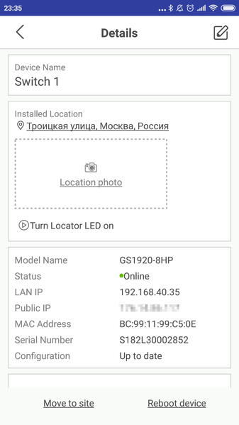 Далее подключаем коммутатор. Напомним, что это гибридная модель, которая способна управляться и через облако и локально. Для интеграции в облачный сервис добавляем через браузер его данные в аккаунт и наше подразделение. Аналогичным образом поступаем и с точками доступа. Обратите внимание, что для гибридных моделей администратор может применять облачное или локальное управление (и менять режим в любой момент), но переключение сопровождается полным сбросом настроек.