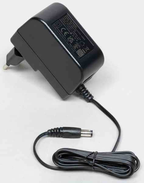Блок питания подключается в розетку, имеет компактные размеры, параметры 12 В 2 А и кабель длиной 1,4 м со стандартным круглым штекером.