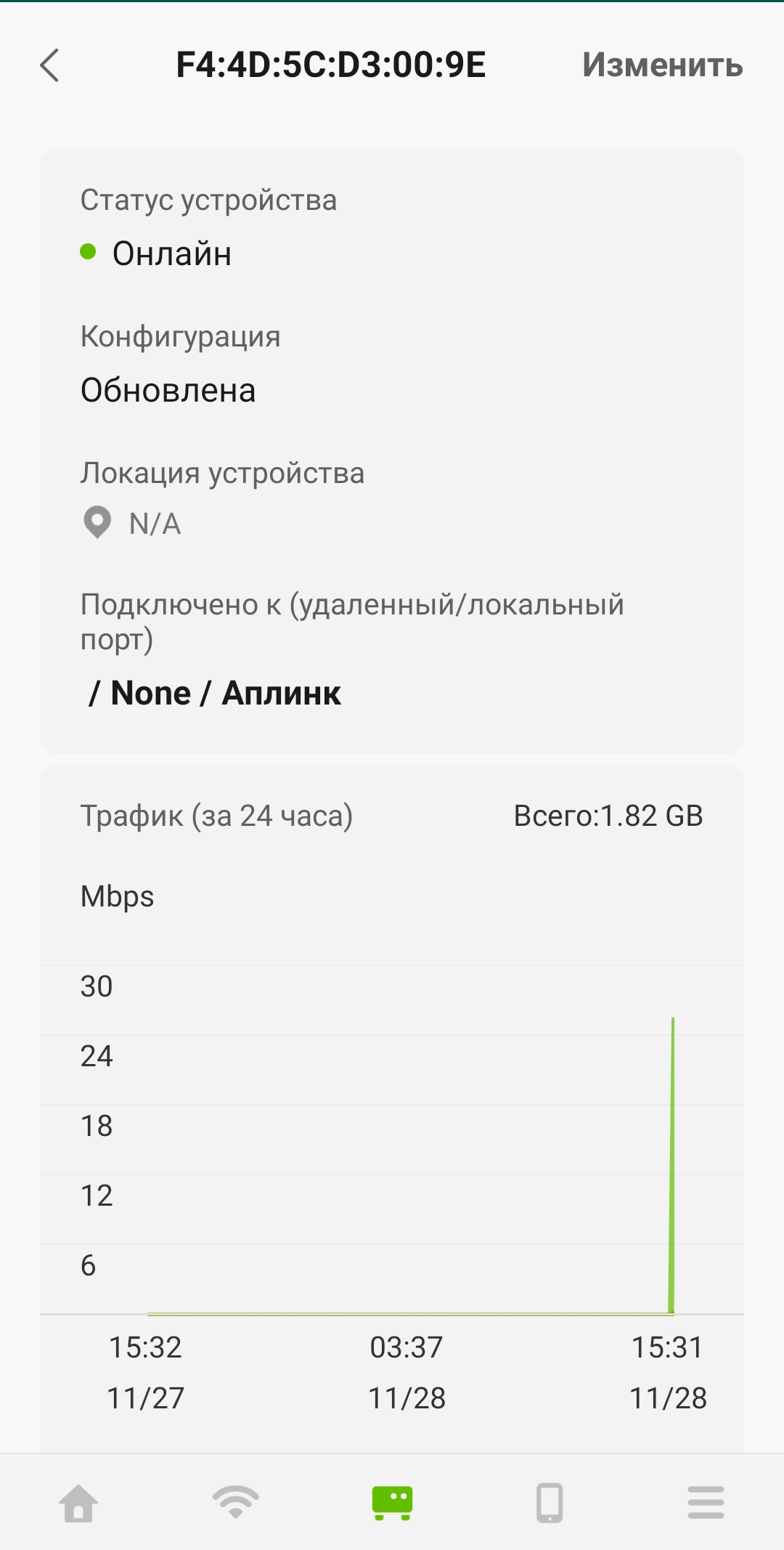 Во время работы можно через мобильное приложение (напомним, что работает через облако — то есть не нужно находиться непосредственно на площадке) мониторить работу оборудования, включая трафик и число клиентов.