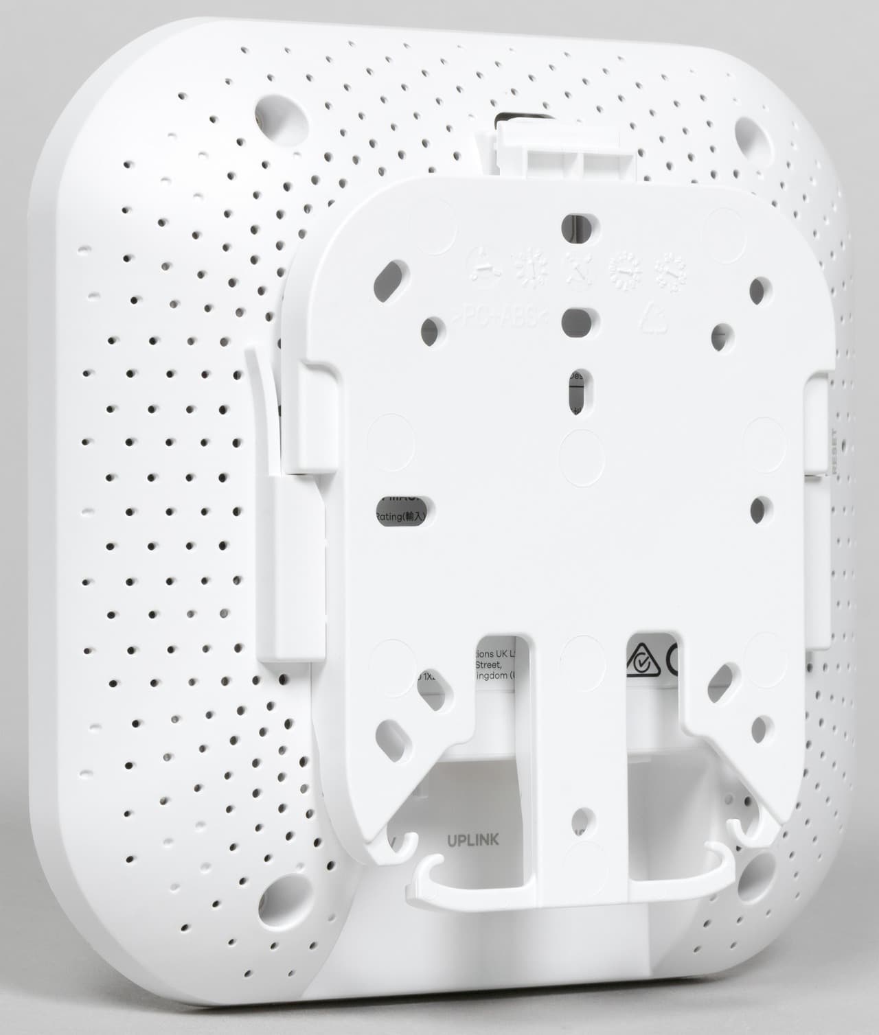 Точка доступа имеет корпус из крепкого белого матового пластика со скругленными углами. Габаритные размеры с учетом крепления составляют 142×142×41 мм.