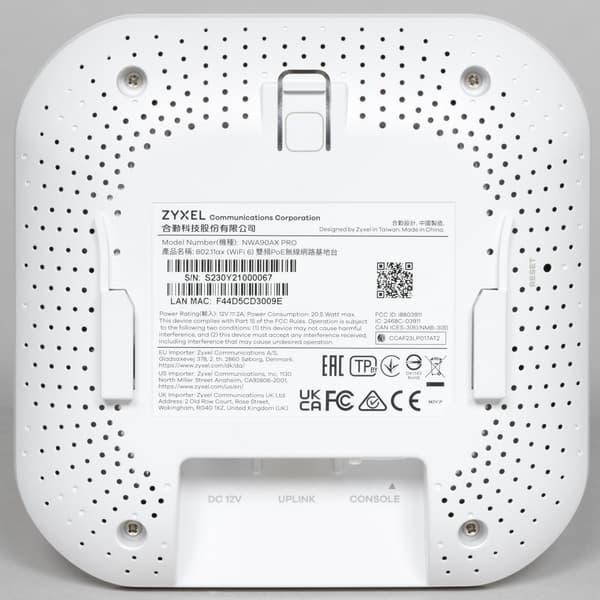 Ключевые характеристики устройства — поддержка Wi-Fi 6 (802.11ax) в двух диапазонах с максимальными скоростями подключения 576 и 2402 Мбит/с и один сетевой порт с поддержкой скорости 2,5 Гбит/с. Сегодня для коммерческого сегмента, пожалуй, именно такие характеристики стоит считать оптимальными при развертывании новых беспроводных сетей.