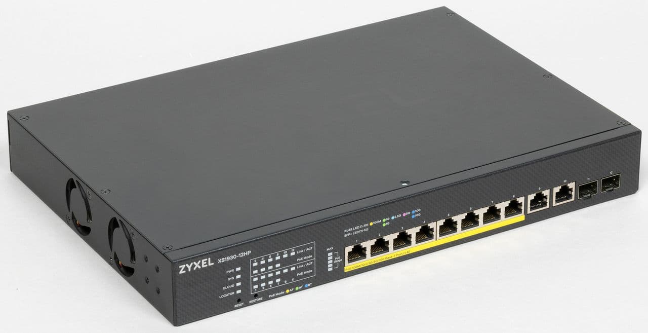 Рассматриваемая точка доступа в общем случае не требует никакого дополнительного оборудования для своей работы. В ней предусмотрен стандартный вход для блока питания, и последний идет в комплекте. Но мы тестировали устройство совместно с коммутатором Zyxel XS1930-12HP, поддерживающим PoE.