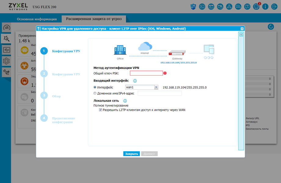 Продукты линейки межсетевых экранов Zyxel USG Flex способны решать многие задачи бизнес-пользователей. Основной, пожалуй, является надежный и быстрый доступ к интернету, включая одновременную работу с несколькими провайдерами для отказоустойчивости и увеличения скорости. На второе место можно поставить безопасный удаленный доступ сотрудников к локальной сети офиса с использованием технологий VPN. Близко к этому стоят и возможности по объединению сетей с применением IPSec. Функции централизованного управления точками доступа в данном материале не описывались, но во многих случаях это тоже является востребованной задачей.
