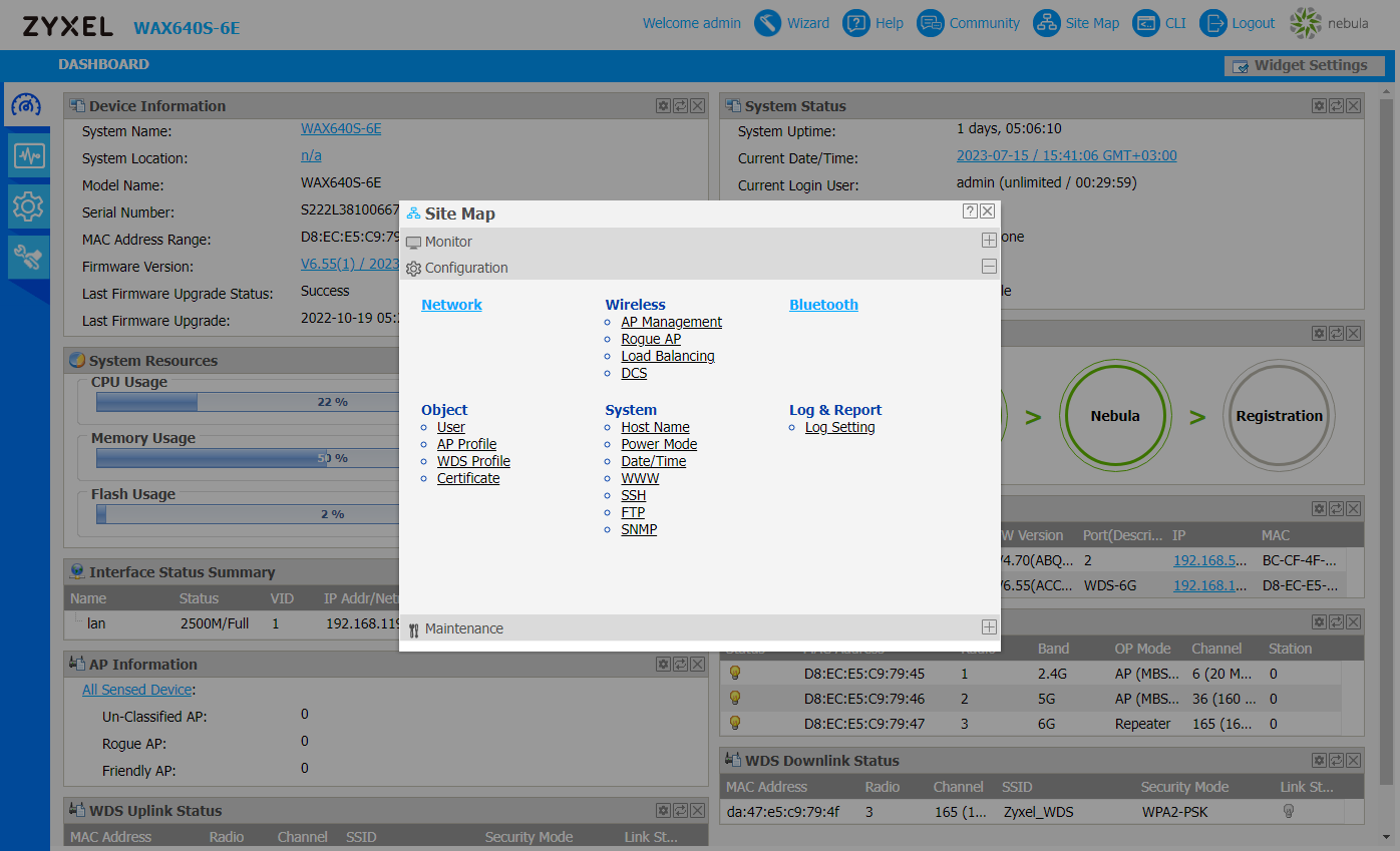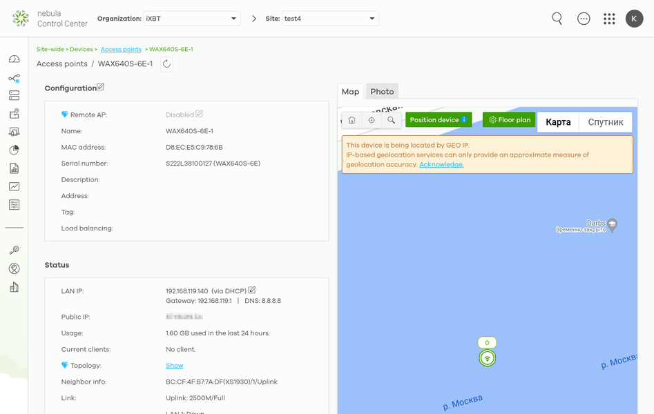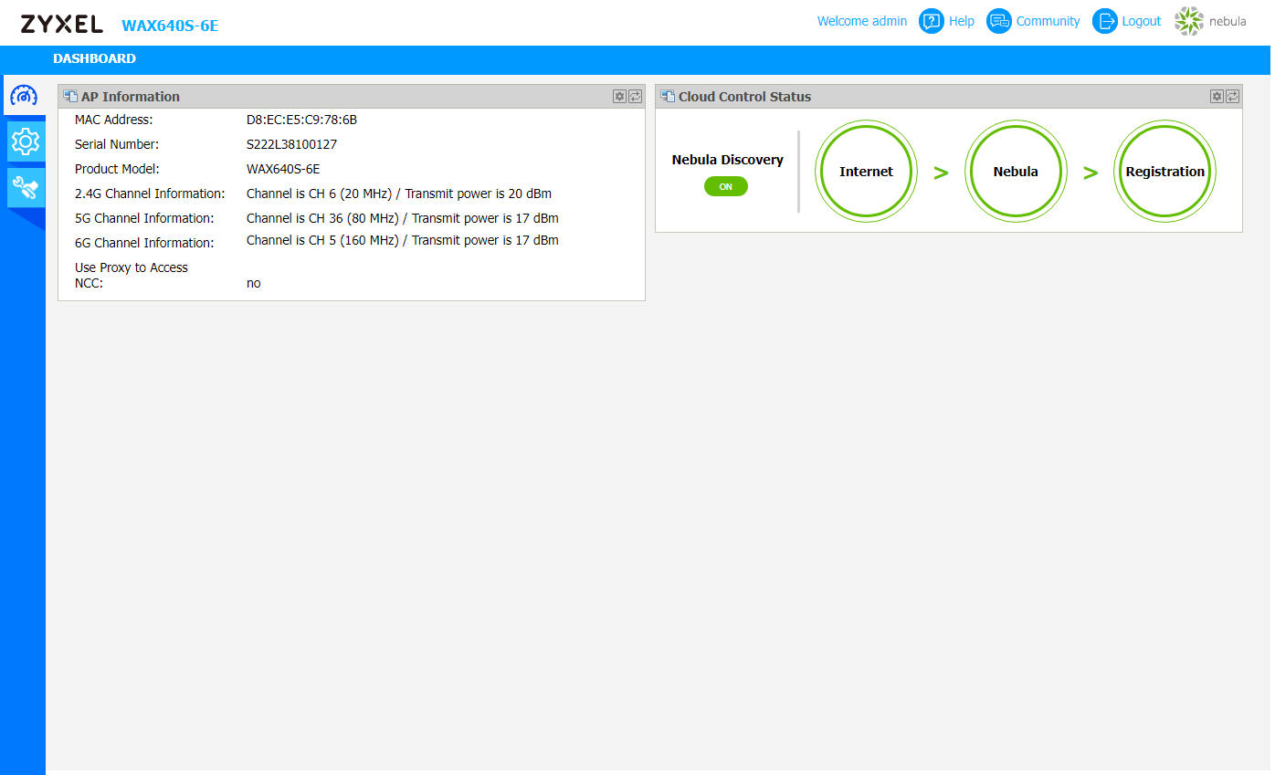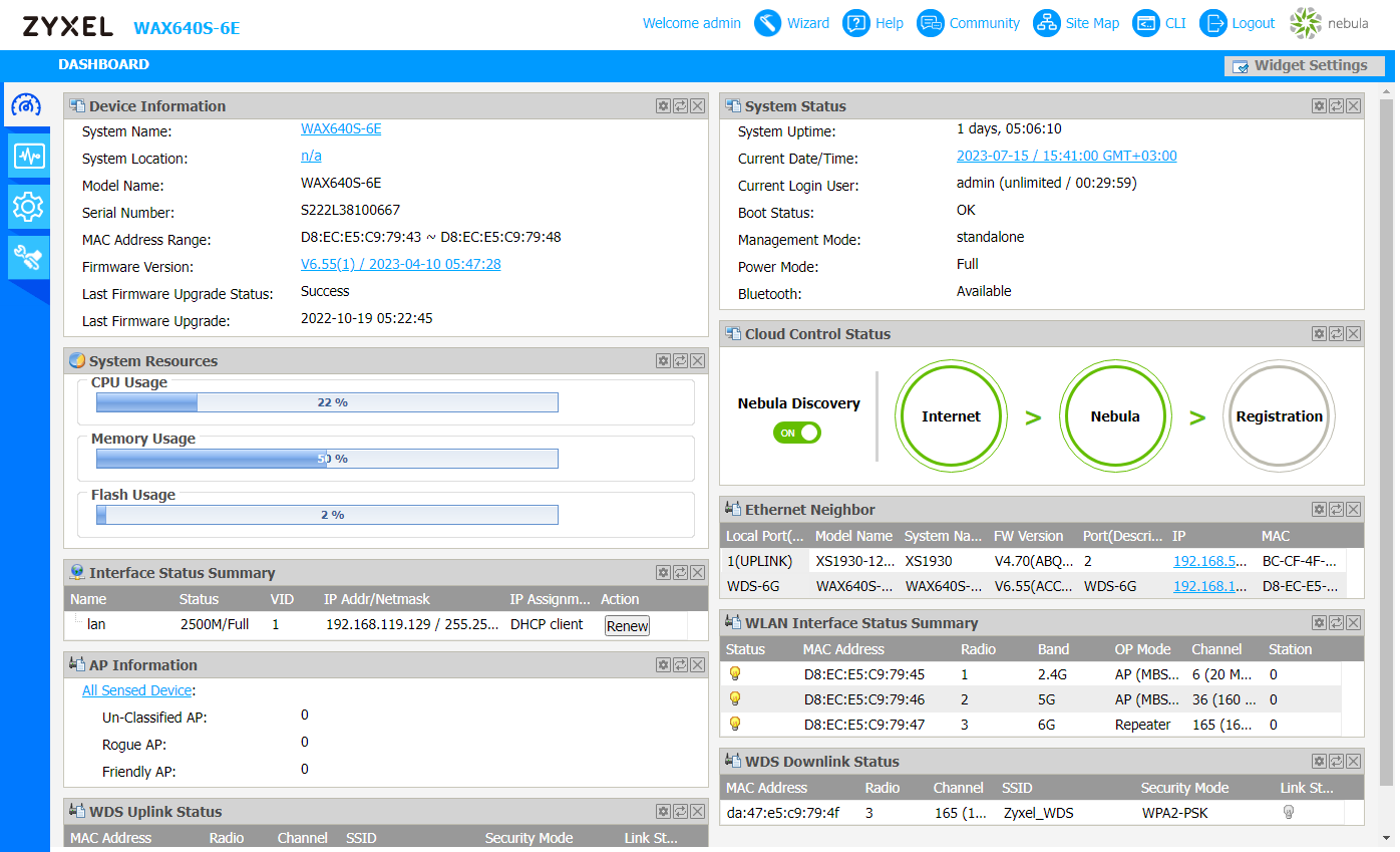 Точки доступа поддерживают несколько вариантов настройки и управления. Мы уже рассказывали о них подробно в прошлом материале — это веб-интерфейс и облачный сервис Nebula. Для последнего также есть фирменное мобильное приложение. Кроме того, возможно применение и аппаратных контроллеров для централизованного управления. В частности, кроме специальных устройств серии NXC, эта функция встроена в межсетевые экраны и шлюзы доступа компании.