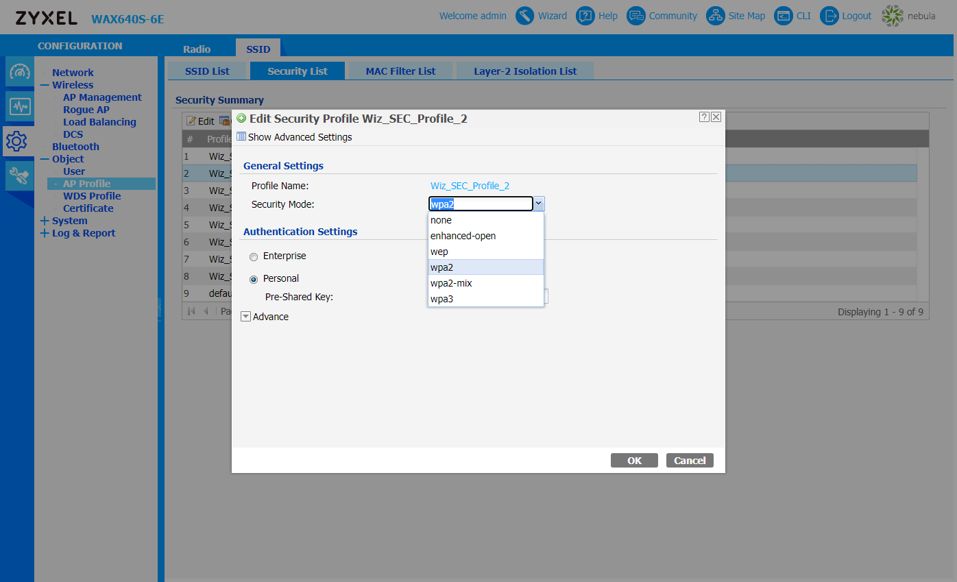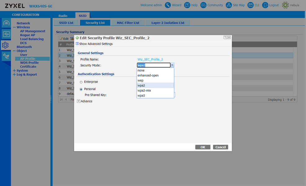 И последняя обязательная настройка — собственно профиль защиты сети. Здесь поддерживаются персональные и корпоративные варианты WPA2 и WPA3.