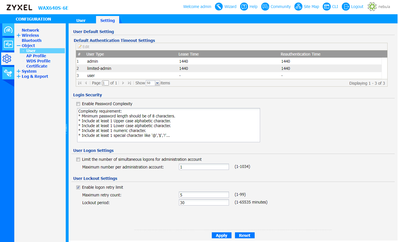 Встроенное программное обеспечение имеет такие востребованные в коммерческом сегменте возможности как несколько SSID, управление полосой пропускания и VLAN, а также развитые функции мониторинга. Для управления точками можно использовать как привычный веб-интерфейс, так и CLI. Кроме того, предусмотрена работа через специализированный контроллер и облачный сервис Nebula. Последний вариант позволяет вам передать управление вашей беспроводной сетью удаленному администратору, что сегодня является распространенным вариантом.