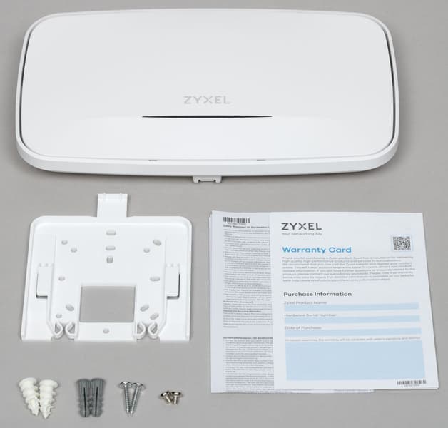 Точки доступа поставляются в компактных картонных коробках с простым оформлением, характерным для оборудования бизнес-сегмента. В комплект поставки точки доступа входит инструкция по технике безопасности и комплект из дюбелей и винтов для крепления.