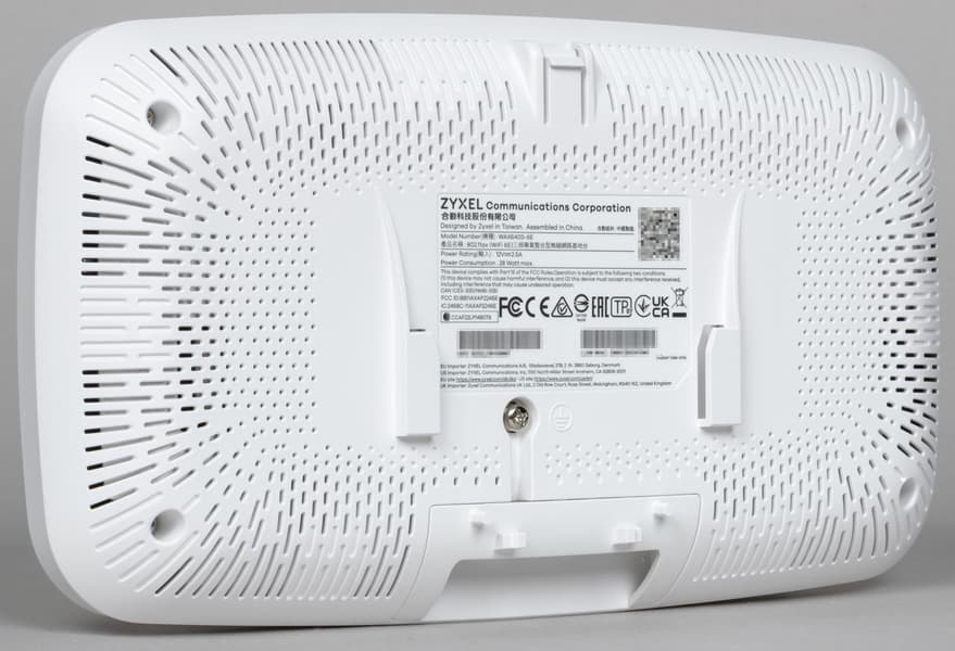 Решение имеет сразу три радиоблока с поддержкой диапазонов 2,4, 5 и 6 ГГц, причем все они работают с актуальным стандартом Wi-Fi 6, так что модель относится к классу AXE7800. В настоящий момент есть определенные особенности при использовании 6 ГГц из-за региональных ограничений со стороны клиентов, однако вариант применения этого диапазона для организации опорной сети в системе из нескольких точек может быть востребован. Для подключения к локальной сети предусмотрено два проводных порта, причем основной поддерживает 2,5 Гбит/с, что востребовано для работы с клиентами Wi-Fi 6. Для питания можно использовать технологии PoE. Конструкция корпуса обеспечивает эффективное охлаждение даже при большой нагрузке, а также удобное крепление на стене или потолке.