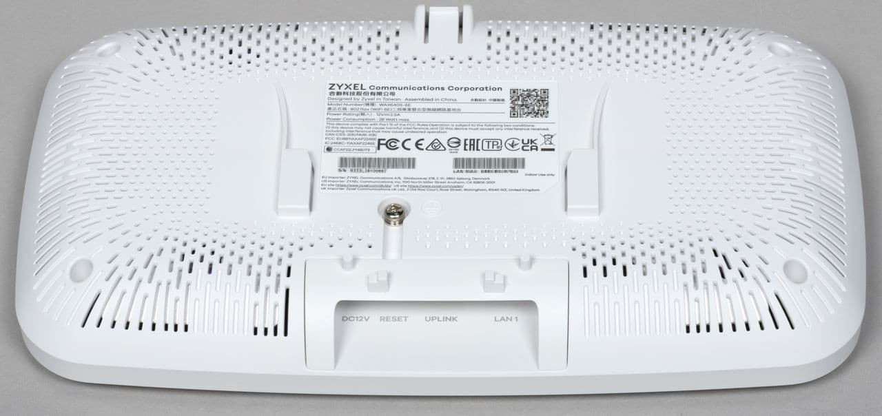 Монтажная пластина уже установлена на точке доступа, для следующей фотографии мы ее сняли. Обратите внимания, что блок питания отсутствует и вам потребуется или купить его отдельно или использовать PoE.