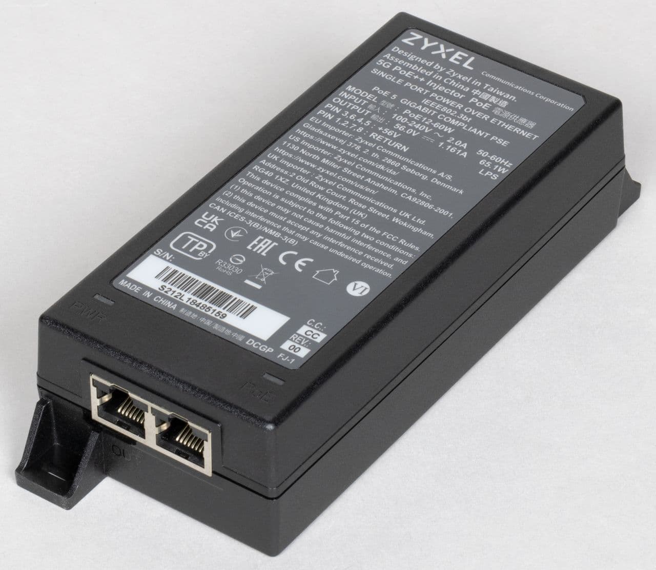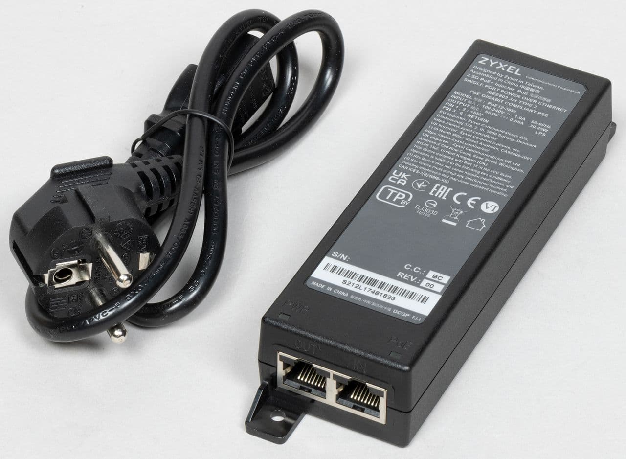 Для проведения тестирования в лабораторию также были предоставлено дополнительное оборудование. В большинстве случаев установка точек доступа осуществляется на потолках или стенах и подвести обычное 12 В питание может быть трудно. Если точек относительно немного или они рассредоточены по большой территории, то оптимально использование инжекторов PoE для подачи по одному кабелю и питания и данных. Важно отметить, что инжекторы должны иметь поддержку требуемых скоростей сетевых портов. В ассортименте Zyxel есть две подходящие для тестируемых устройств модели — 2.5G PoE+ (PoE12-30W) и 5G PoE++ (PoE12-60W).