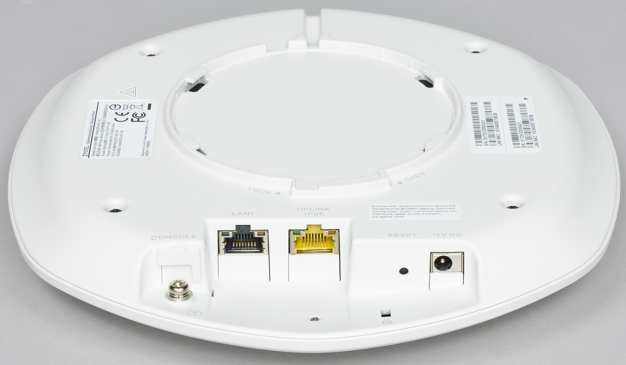 Заявленное потребление устройства составляет 15,5 Вт. Решение поддерживает PoE и по стандарту 802.3at и по стандарту 802.3af, однако во втором случае можно использовать только один из диапазонов. С точки зрения конфигурации сети, решение отвечает корпоративным стандартам: можно создать до 16-ти SSID, поддерживаются VLAN, IPv6, SNMP, списки контроля доступа, RADIUS/Microsoft AD/LDAP и многие другие функции. Для настройки может быть использован веб-интерфейс, специальные фирменные программы, облачная технология Nebula и даже CLI.