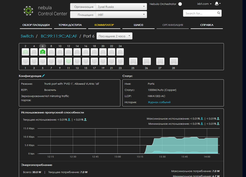 Набор предлагаемых в прошивке функций вполне стандартен для данного сегмента и позволяет решать множество задач, включая управление трафиком и средства защиты сети. Продукт может быть использован как в SMB, так и в достаточно крупных сетях, если не требуется интеграции в общие системы управления сетевыми ресурсами. Реализация веб-интерфейса для доступа к настройкам несколько огорчила своим устаревшим дизайном и немного запутанной организацией. Альтернативный вариант работы через облако Nebula выглядит заметно современнее и удобнее. Если же сравнивать в целом сценарии локального управления и контроля через облако, то каждый из них имеет свои плюсы и минусы. Локальный веб-интерфейс предоставляет доступ ко всем внутренним настройкам коммутатора, однако для работы с ним администратору необходимо находиться в той же локальной сети или использовать варианты удаленного доступа — например, VPN или проброс портов. Для облака Nebula достаточно иметь доступ в интернет через браузер (и, конечно, подключение коммутатора к облаку), но возможностей по тонкой настройке в данном случае будет меньше. А вот исторические данные о работе лучше представлены в облаке. Жаль, что не удалось обеспечить близкий набор функций в этих двух вариантах управления.