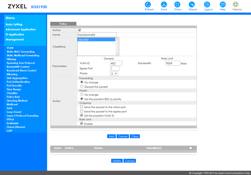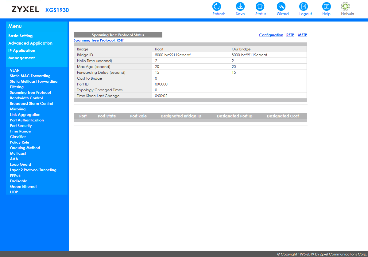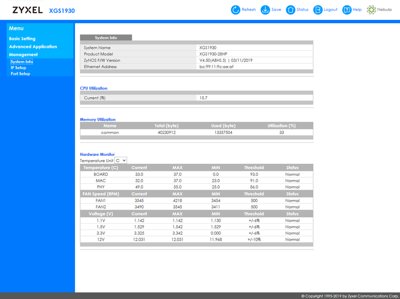 При интеграции в сторонние системы мониторинга будет пригодится поддержка устройством протокола SNMP (включая v1, v2c и v3, распространенные MIB и расширенный MIB Zyxel). Кроме того, здесь реализован RMON и отправка событий на внешние сервера Syslog.