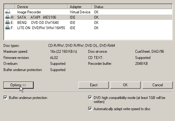 Данные о возможностях работы приводов с Audio СD мы получили от популярной программы EAC (результаты работы EAC Configuration Wizard).
