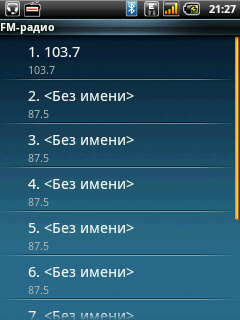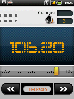 Программа управления радио позволяет задать частоту станции вручную или найти доступные автоматически. Модулем поддерживается RDS. Вывод звука возможен через основной динамик коммуникатора. Отключить экран вручную нельзя.
