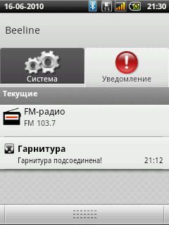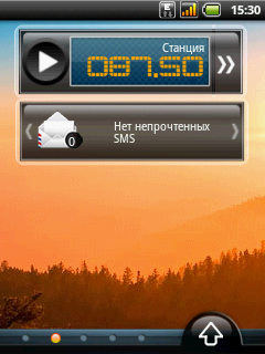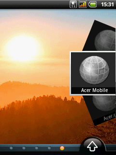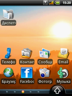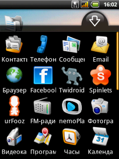 После загрузки и настройки коммуникатора на экране появляется почти неизмененный рабочий стол операционной системы. На нем расположены ярлыки наиболее используемых приложений. В верхней части экрана находится панель уведомлений с различными значками, информирующими о работе частей операционной системы, программ и аппаратных модулей коммуникатора. Снизу расположена вкладка, потянув за которую, можно открыть список всех установленных программ и доступных настроек. Конечно, список ярлыков и виджетов на рабочем столе системы можно менять как заблагорассудится. Для этого предусмотрены четыре дополнительных вида рабочего стола. Переключаться между ними можно при помощи пассов пальцем влево и вправо. Разработчики уже разместили на них следующие виджеты: управление радиоприемником, информация о сообщениях, проигрыватель аудио- и видеофайлов, twidroid, spinlets и несколько ссылок на сайты.