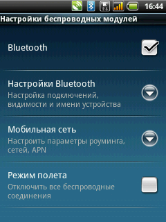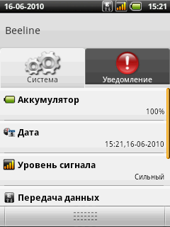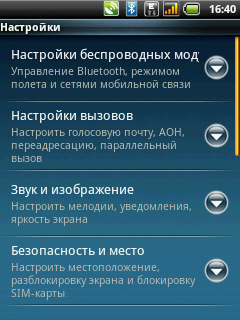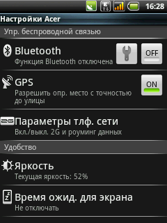 В отдельной утилите отображается большинство основных настроек коммуникатора. Это удобно, так как не приходится заходить в основное меню настроек системы.