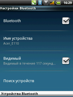 Печально, что реализация Bluetooth по умолчанию в Е110 не поддерживает обмен файлами и предоставление доступа к сети. Первый недостаток можно исправить, установив стороннюю программу обмена файлами, со вторым же придется смириться или использовать подключение коммуникатора с помощью USB-кабеля. Зато в Е110 реализован протокол подключения беспроводных стереонаушников.