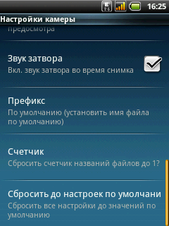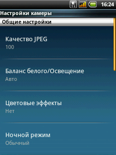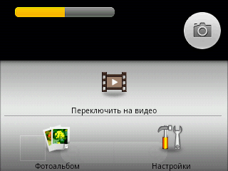 На основном экране программы управления фотокамерой находится крупная кнопка, отвечающая за «спуск затвора», а также клавиши цифрового зума, иконка с изображением последнего полученного фотоснимка и шкала управления яркостью. Следующие параметры находятся в отдельном меню: баланс белого, цветовые эффекты, ночной режим, разрешение снимка, счетчик снимков и правила их наименования.