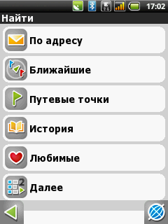 Под нижней кромкой дисплея находятся четыре сенсорные кнопки, отвечающие за стандартные действия в операционной системе: возврат к основному экрану, поиск чего бы то ни было в коммуникаторе, возврат к предыдущему экрану, вызов меню программы. Как обнаружилось в ходе работы с коммуникатором, на адекватность нажатий сильно влияет первоначальная калибровка сенсорного экрана.