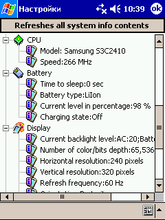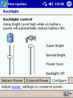 - сенсорный трансфлективный экран с разрешением 320x240 точек (65536 цветов). Диагональ 3.5". Стандарт для Pocket PC, ожидать другого просто нелепо.