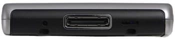 На верхней грани находятся: разъем наушников (джек 2.5" прямо наваждение какое-то, или мы наблюдаем становление очередного стандарта), SDio-интерфейс, гнездо для пера и отверстие микрофона. Последнее привычнее было бы видеть на нижней грани, но нестандартно расположенный динамик мешал бы работе диктофона.