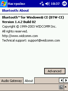 Как известно, в современных КПК могут быть использованы драйвера двух видов: разработанные компанией WIDCOMM (ныне распространяющиеся под брендом Broadcom) и неудачные. Первые встречаются намного чаще, и именно они установлены на Acer n30. Версия — 1.4.2 build 02, вышедшая еще в 2003 году. Помните, КПК далеко не нов. На стабильности работы это никак не сказывается: n30 работает с Bluetooth без ошибок в пределах доступных профилей. Выход в интернет, получение данных с BT-GPS, синхронизация с настольным компьютером, вывод звука на гарнитуру, обмен контактами и прочей информацией — не проблема для машинки.