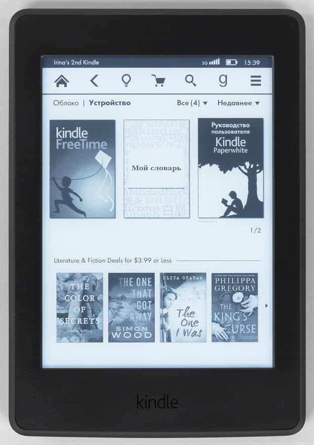 Во-вторых, цена этой электронной книги для российского покупателя напрямую зависит от курса доллара, ведь покупаем мы в Amazon. По официальному курсу ЦБ на 6 августа 2015 г. цена Amazon Kindle Paperwhite 3 составила около 8900 рублей (без учета доставки). Кроме того, доставка читалки в РФ напрямую с Amazon на момент публикации была недоступна, что, увы, поднимает невеселый вопрос о дополнительных расходах.