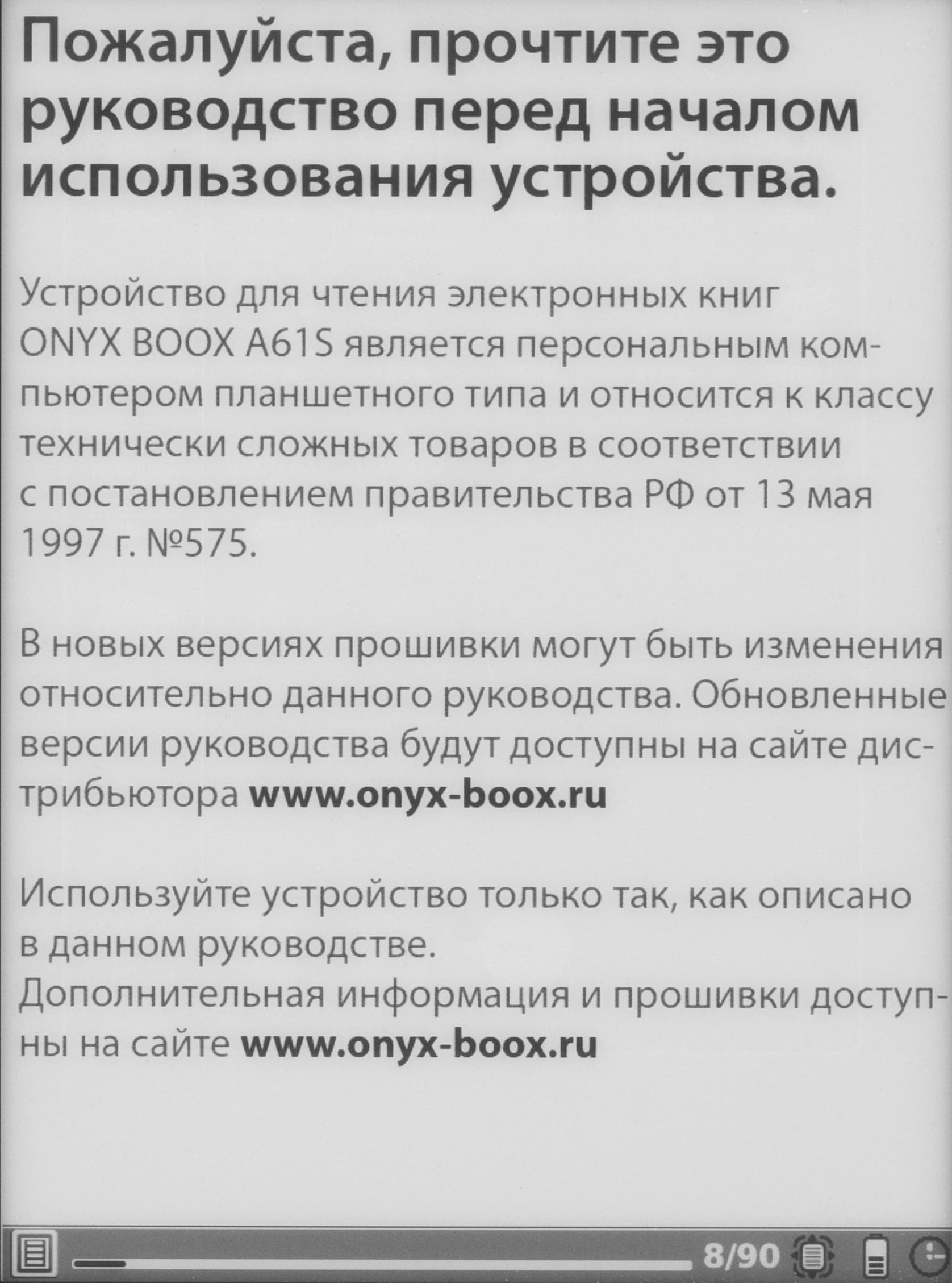 Итак, что же мы видим в книге Onyx A61S. Она поддерживаем огромное количество всевозможных типов файлов — это PDF, EPUB, TXT, TXT.ZIP, HTML, RTF, RTF.ZIP, FB2, FB2.ZIP, DOC, DOCX, DjVu, CHM, XLS, XLSX, MOBI (Non-DRM), PPT, PPTX, PDB. Другими словами, практически любой файл с текстом, который может встретиться в вашем компьютере, эта книга способна «переварить» без необходимости конвертации, отсылки куда-либо и т. п.