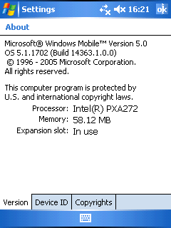 Средства беспроводной передачи данных представлены во всем многообразии. Порт инфракрасной связи обеспечивает работу со скоростью до 115 Кбит/сек. Вместе с WM 5.0 поставляются обновленные драйверы Bluetooth – стек BT-PPC 1.7.1.0900. Все стандартные операции – соединение и выход в Интернет с помощью телефона, синхронизация и использование компьютера в качестве шлюза, обмен файлами – проходят успешно, никаких нареканий при работе с модулем Bluetooth не возникло. Присутствует возможность подключения к КПК беспроводной клавиатуры, гарнитуры и стереонаушников – для этого созданы соответствующие профили в менеджере Bluetooth.