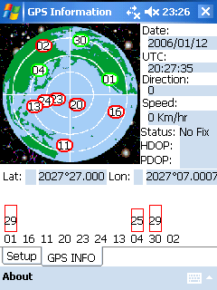 С использованием приемника внутри помещений возникли проблемы. Даже при расположении КПК вблизи окна устойчивого приема добиться не удалось. Сигнал поступал от 2-3 спутников, скорее всего отраженный и низкой мощности, определения координат не происходило. Уже в нескольких метрах от окна приемник становился полностью слепым.