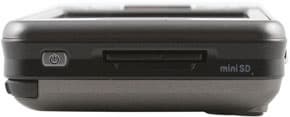 Слот карт miniSD и кнопка включения компьютера расположены на верхнем торце. Использовать кнопку по назначению затруднительно из-за её небольших размеров. Внизу у коммуникатора находятся: разъем miniUSB, микрофон и разъем (2,5 мм) для наушников.