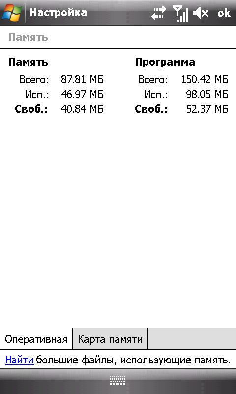 Разработчики из ASUS не поскупились и установили 288 МБ оперативной памяти (доступны только 152 МБ), которых хватит «за глаза» на все нужды современной мобильной жизни. Кроме того, для системных нужд предусмотрено 256 МБ флеш-памяти. Для «души» отведено побольше: 4 Гб. Еще недавно такой объем казался чем-то заоблачным (ау, Palm). Но теперь конкуренты предлагают от 8 до 32 гигабайт. Но народная мудрость гласит: сколько бы флеш-памяти под оболочкой коммуникатора не было, закончится она одинаково быстро.