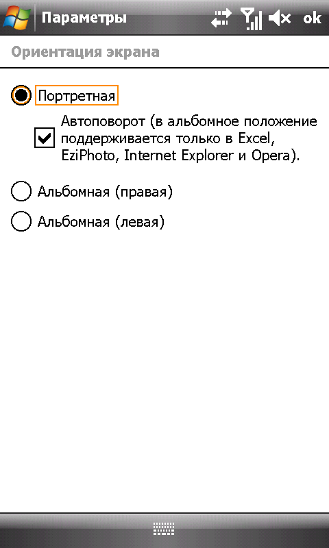 Необходимо отметить, что датчик ускорения позволяет автоматически изменять ориентацию экрана только при работе с несколькими программами. В их число входят: Opera Mobile, Internet Explorer, Mobile Excel и EziPhoto программа-фотоальбом с расширенным функционалом. Вероятно, в дальнейшем поддержка акселерометра появится и в других приложениях, но на настоящий момент она сильно ограничена. Реализация аналогичной функции в Samsung WiTu находится на более высоком уровне смена ориентации экрана поддерживается всеми программами и операционной системой.